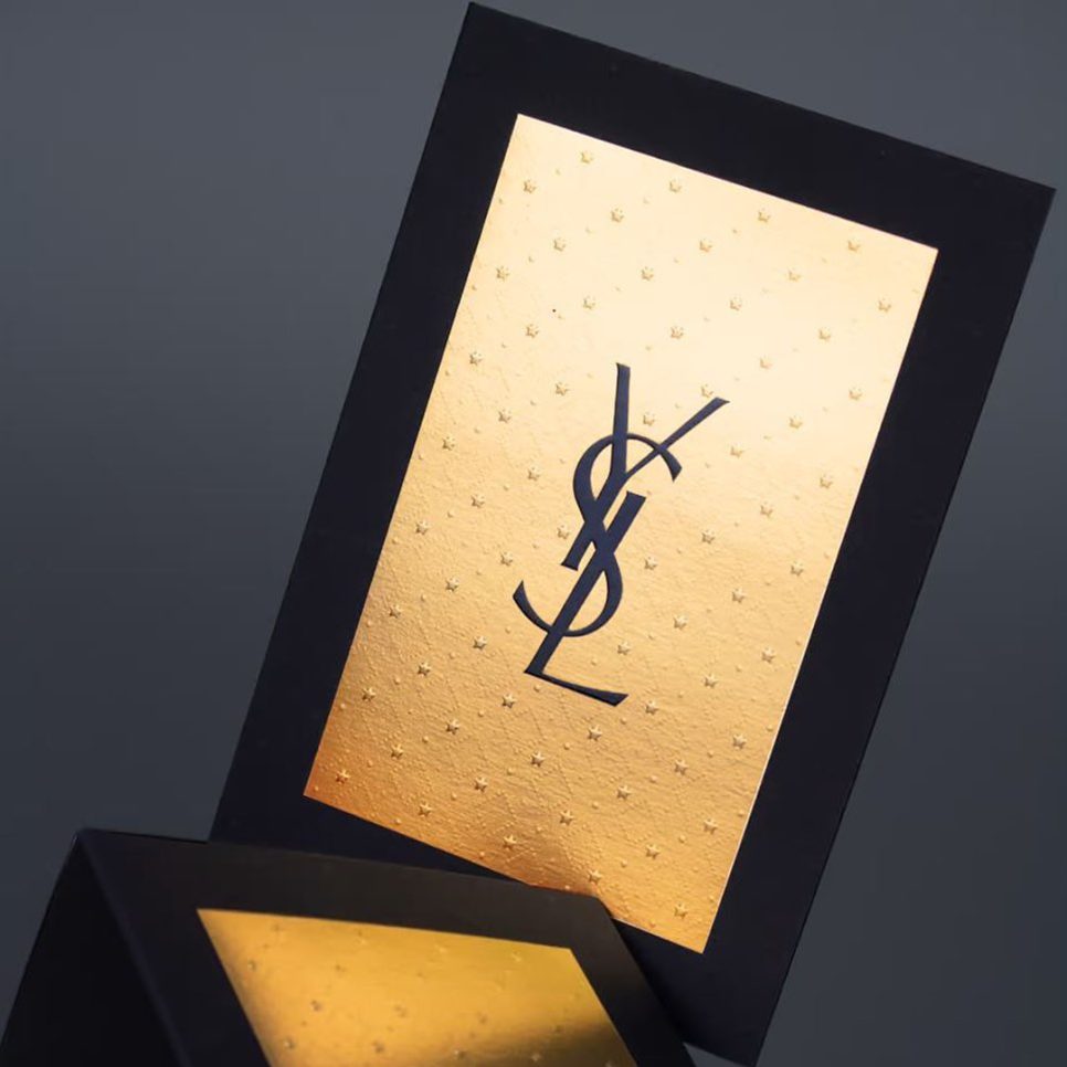 만약 기업이나 브랜드의 핵심 가치가 우아함이라면 이 사례를 주목해야 합니다. 입생로랑의 새해 인사 카드는 차분함과 고급스러운 우아함을 동시에 추구합니다. 무염소 표백펄프를 사용한 FSC 인증 종이인 ‘시리오 블랙’을 사용하여, 박 작업 시 발생할 수 있는 산화 문제를 해소하고 중성지로서의 뛰어난 보존성까지 확보했습니다.